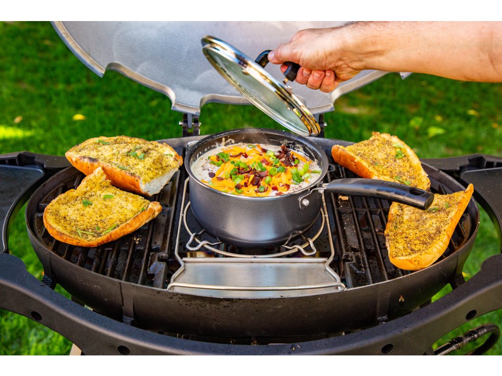 Ohřívací stojan – udržuje hotové jídlo teplé, zatímco pokračujete v grilování dalších porcí.