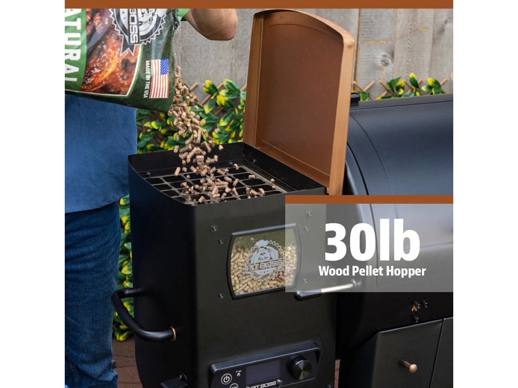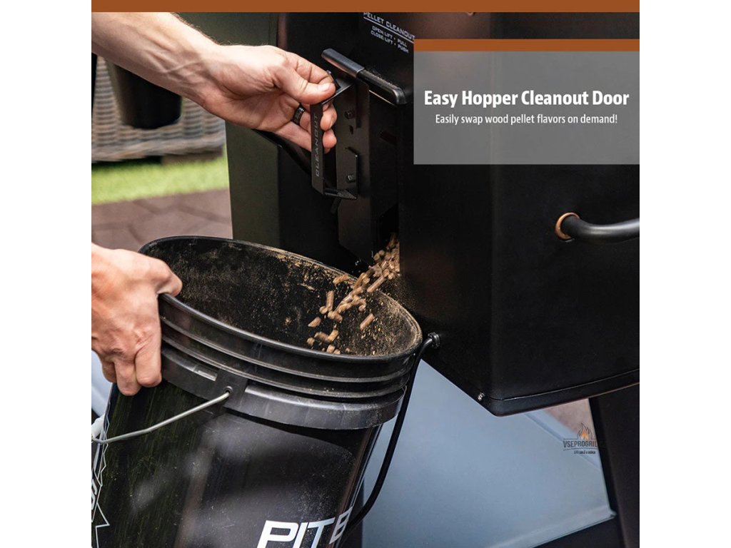 – Zásobník o objemu 13,6 kg pojme dostatek pelet pro vaření i těch nejpomalejších a nejnižších pokrmů a je vybaven dvířky pro snadné čištění zásobníku.
