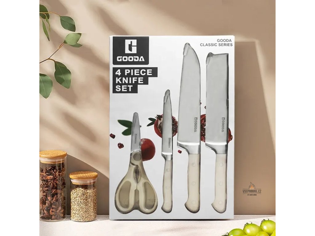 Nůž chef 2,5 mm 20,3cm Nůž Nakiri 2,5 mm 18cm Nůž universální 2,0 mm 12,7cm Kuchyňské nůžky.