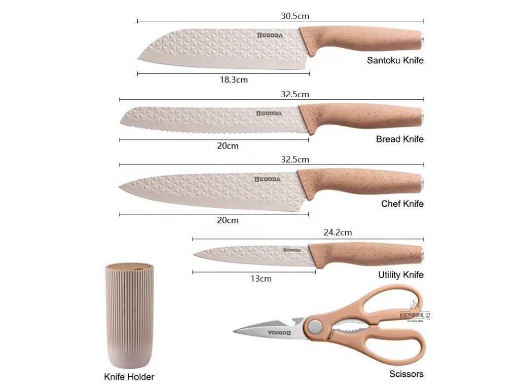 6-dílná sada kuchyňských nožů s blokem bílá Gooda