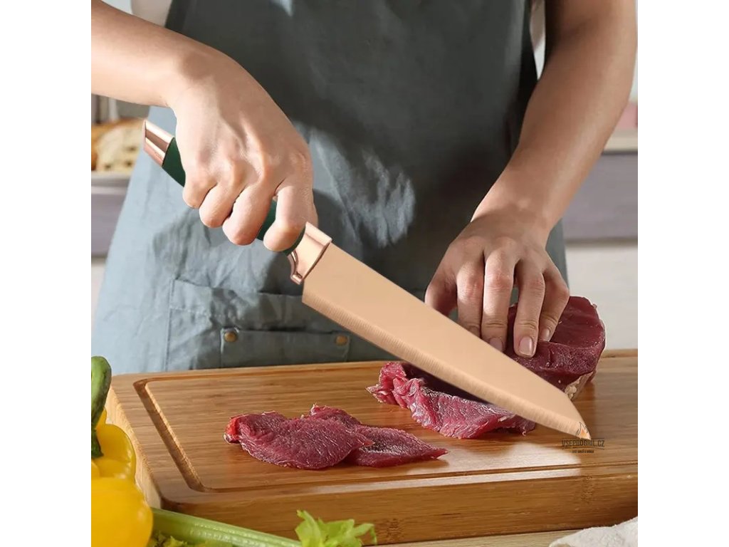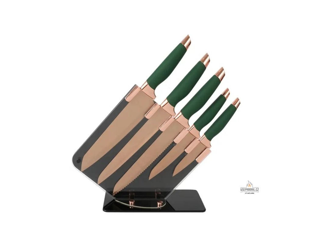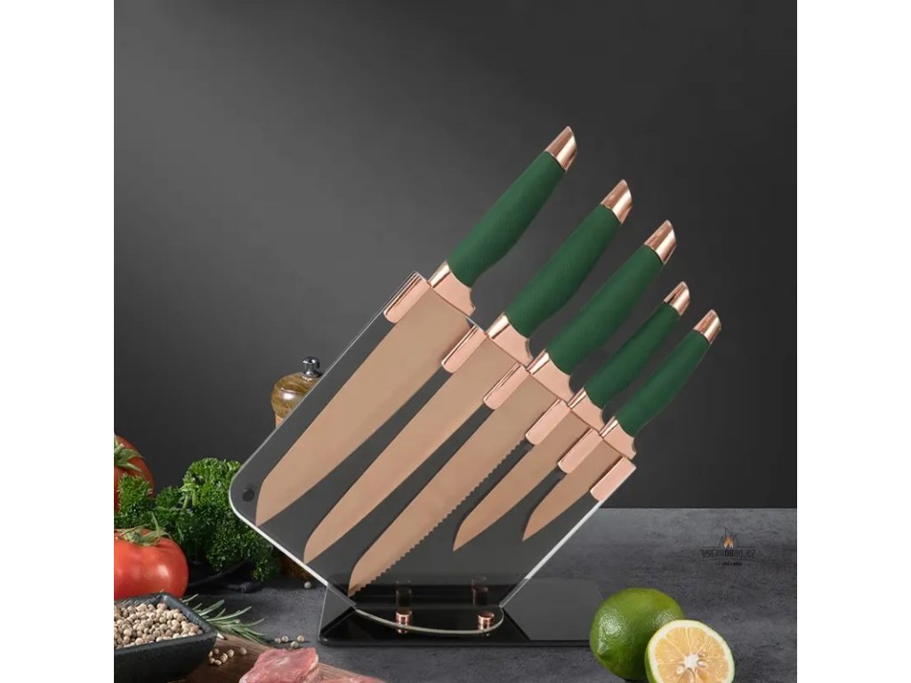 6-dílná sada kuchyňských nožů zelená se stojanem Edice Rose Gold Gooda