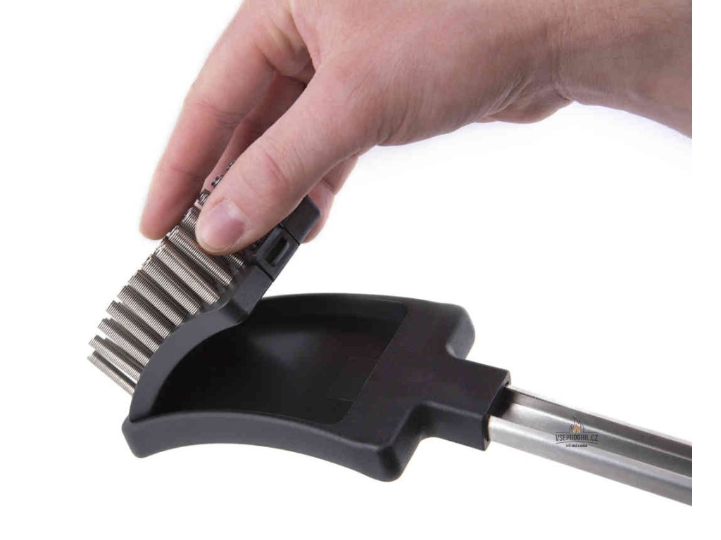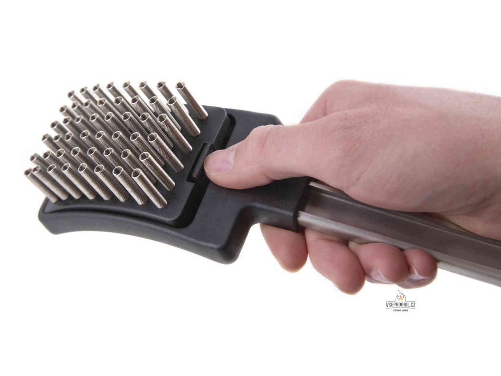 Odolné spirálové pružiny Broil King - Kartáč Baron nerez spiral jsou zhotoveny z nerezové oceli. Na čištěném povrchu se velice snadno pohybují a účinně odstraňují zbytky připečeného jídla na roštech grilu. Štětiny se snadno dostávají i do těžko přístupných míst. Tento nerezový grilovací kartáč s vinutými pružinami je dodáván s dvěma náhradními vyměnitelnými hlavicemi.
