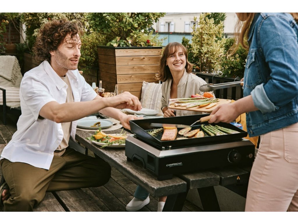 Díky technologii Campingaz® Blue Flame gril rovnoměrně distribuuje teplo, zatímco elektronické zapalování umožňuje snadný start. Čištění je jednoduché díky snadno přístupné misce na tuk, která je vhodná i do myčky.