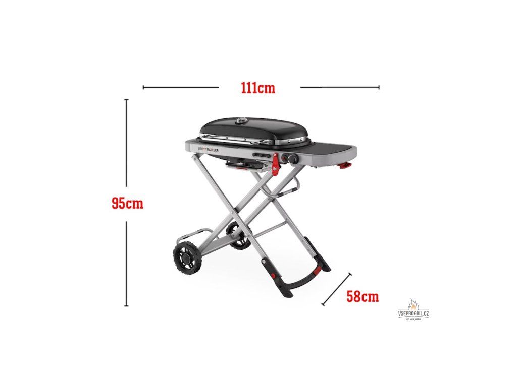 Důmyslná skládací konstrukce tvoří pevný stojan grilu, velmi snadno a rychle se skládá a po složení se jednoduše na dvou kolech snadno převáží.