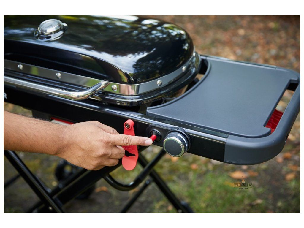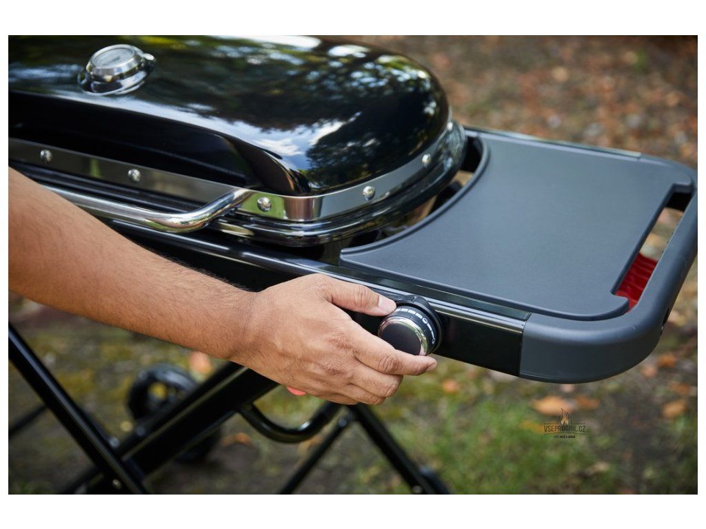Poklop grilu se zvedá pomocí kovového, tepelně odizolovaného madla. V poklopu je dále zabudován teploměr, abyste měli teplotu uvnitř grilu vždy pod naprostou kontrolou. K tomu slouží i plynule nastavitelný regulátor hořáku, který je umístěn z přední strany. Výkon lze nastavit pro dostatečně velký rozsah teplot, abyste na grilu mohli připravovat vše od palačinek až po pořádný hovězí steak. Vedle kolečka regulátoru je ještě tlačítko piezo zapalování pro zažehnutí plamene.