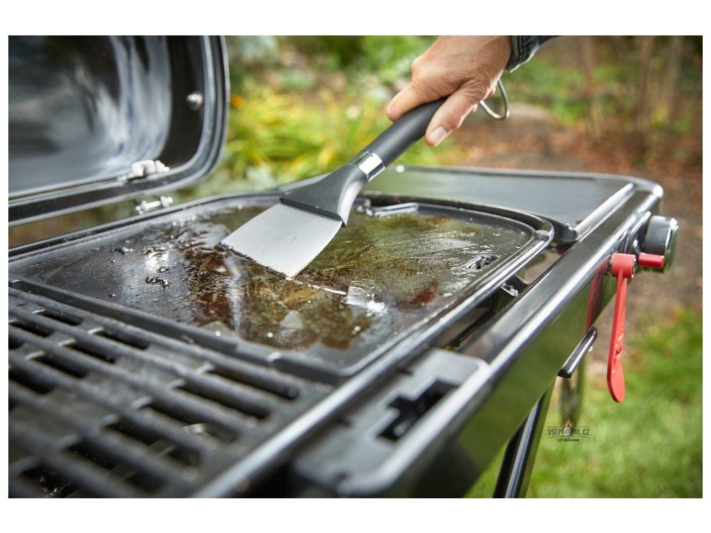 - Výkonný hořák z ušlechtilé oceli rovnoměrně rozvádějící teplo po celé grilovací ploše
