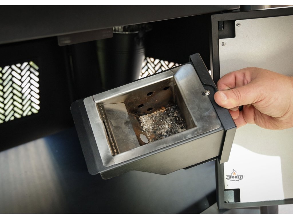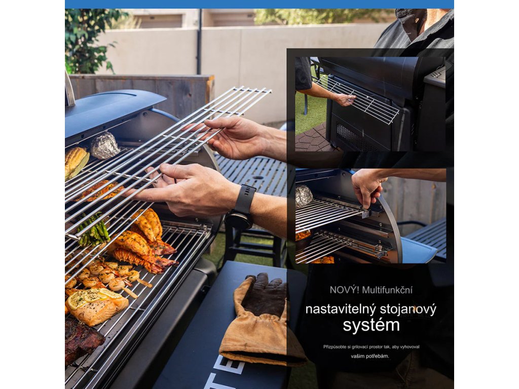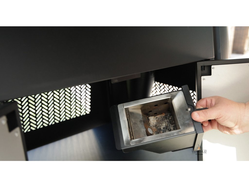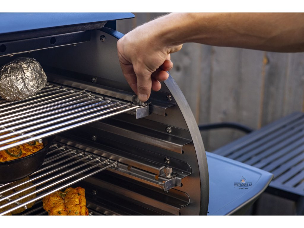 Kompletní výbava. Litinové rošty, kryt, Wi-Fi modul, masové sondy a praktické police v ceně.
