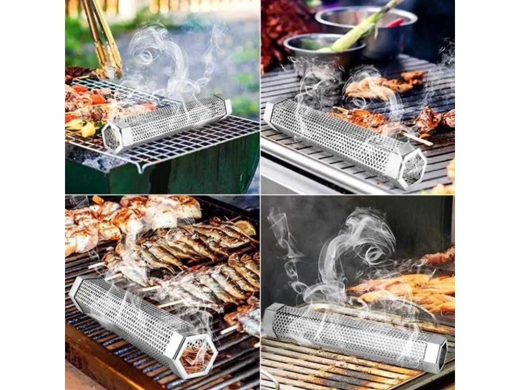 Díky kvalitní potravinářské nerezové oceli vyniká dlouhou životností, odolností vůči korozi i vysokým teplotám, a zároveň neovlivňuje chuť připravovaných pokrmů. Tuba je navržena pro snadné použití – stačí ji naplnit dřevěnými peletami nebo štěpkou, zapálit a vložit do grilu či udírny.