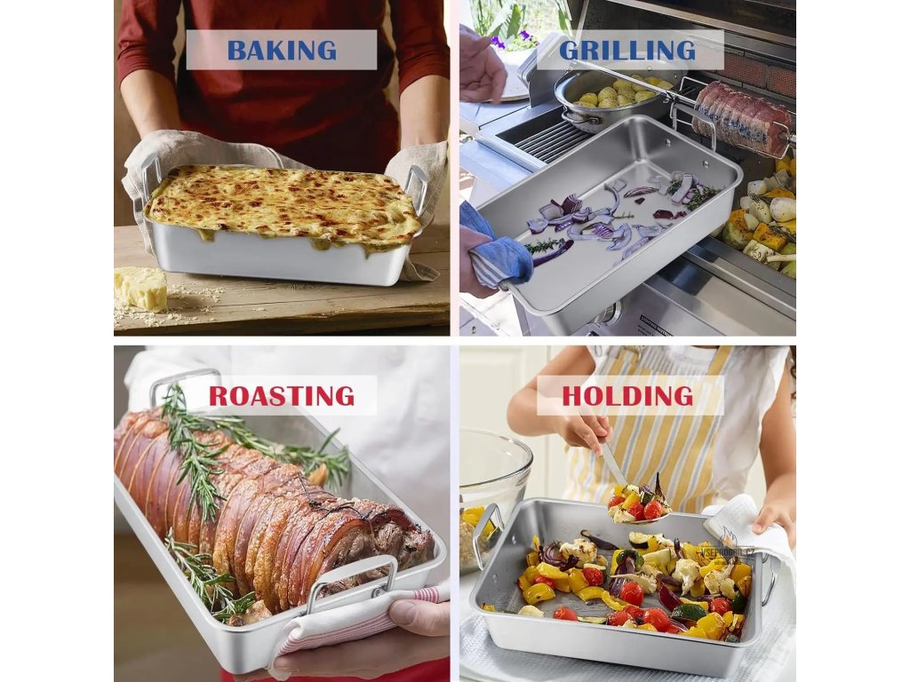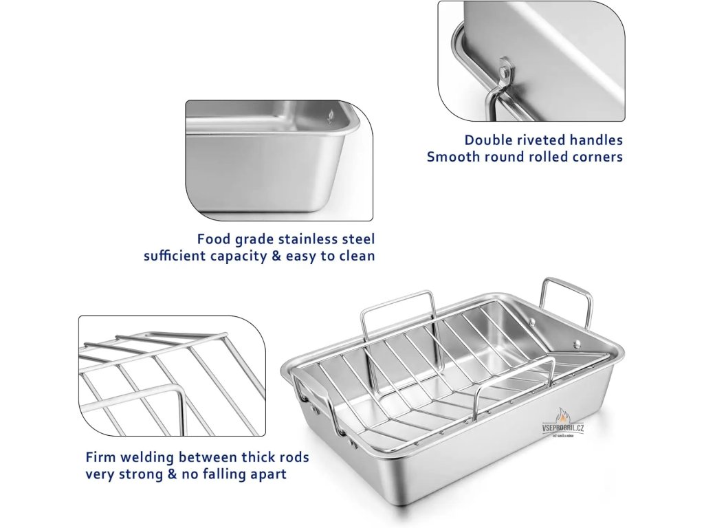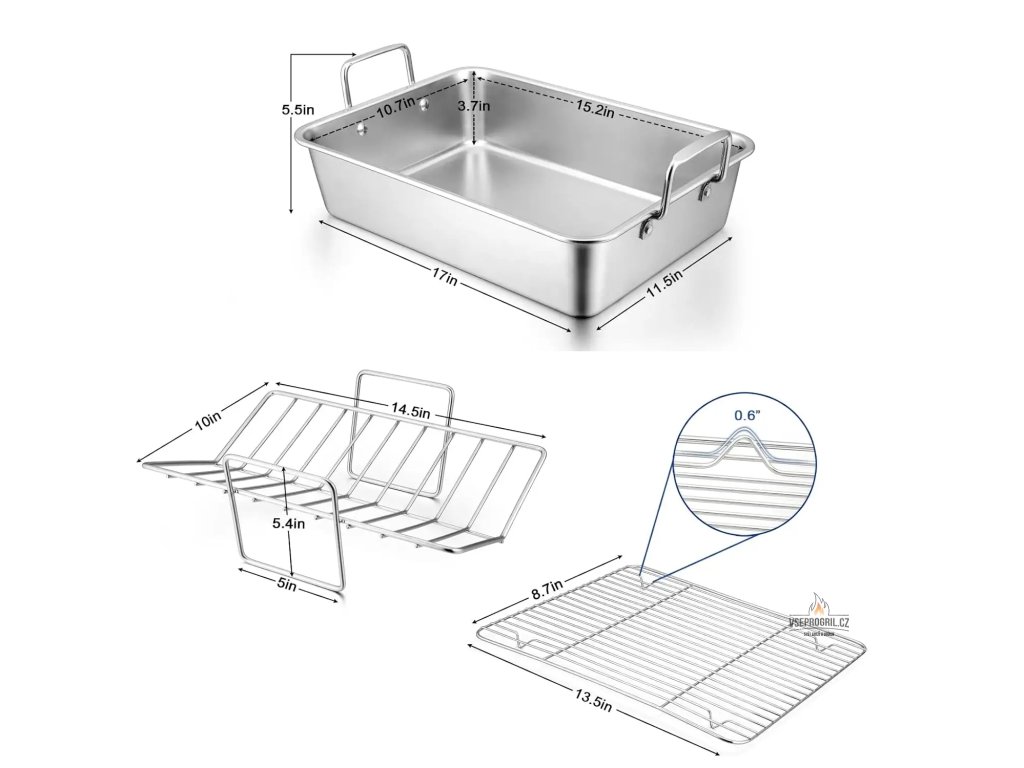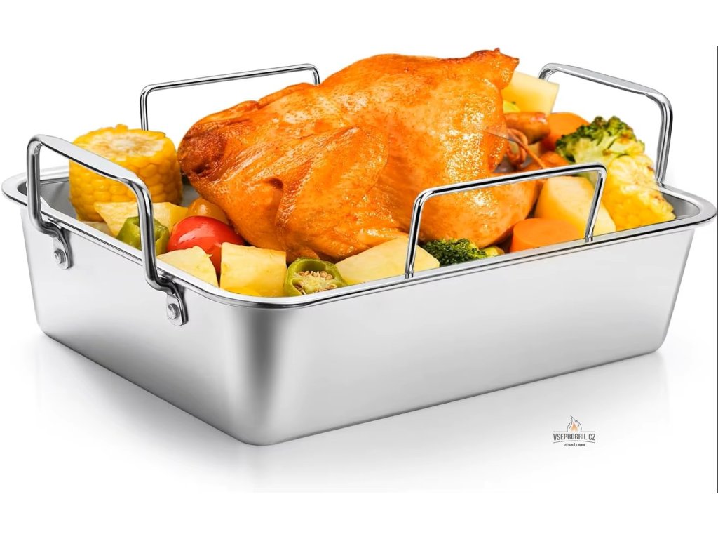 - Nerezový plech s mřížkou a roštem je kuchyňský nástroj, který je ideální pro pečení v troubě, grilu nebo pro přípravu masa.