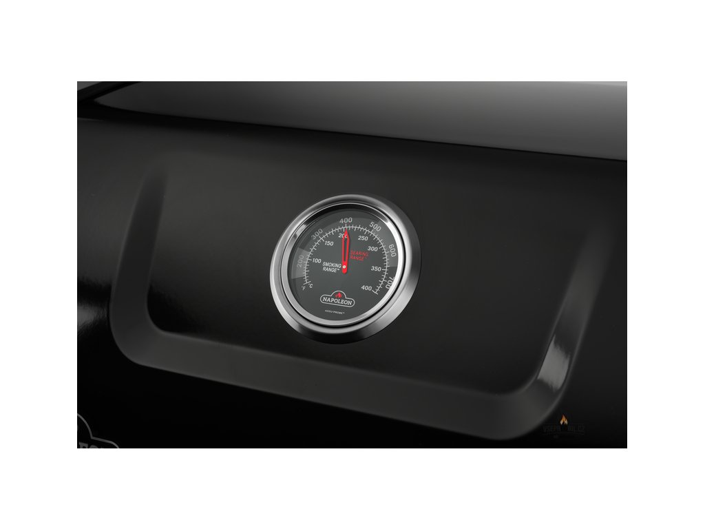 - V poklopu je zabudovaná termosonda pro snadné sledování provozní teploty uvnitř grilu
