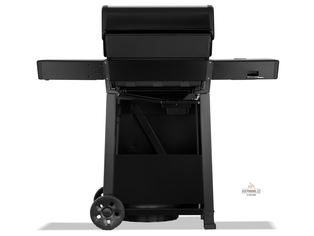 Má prémiové vlastnosti grilů Napoleon jako systém zapalování JETFIRE, Sizzle Zone, porcelánem smaltovaný litinový rošt WAVE, robustní kolečka pro snadné přemístění grilu nebo velkorysé odkládací plochy, jednu sklopnou polici, háčky na grilovací nářadí, otvírák na pivo a designové dveře. To vše za skvělou cenu.