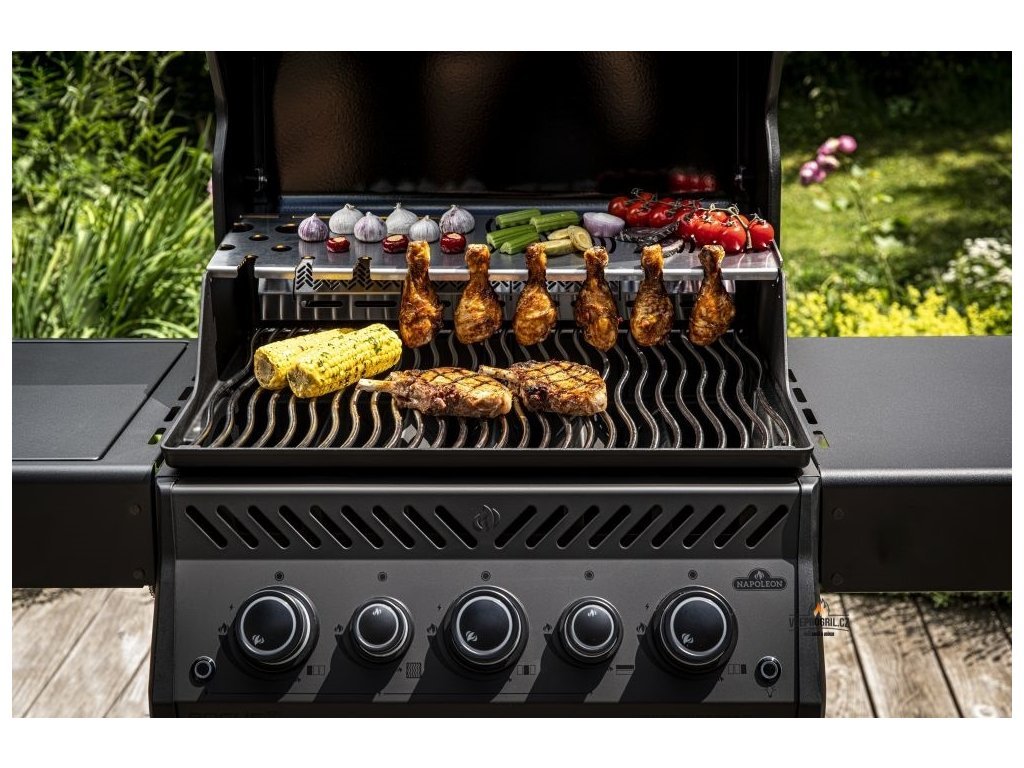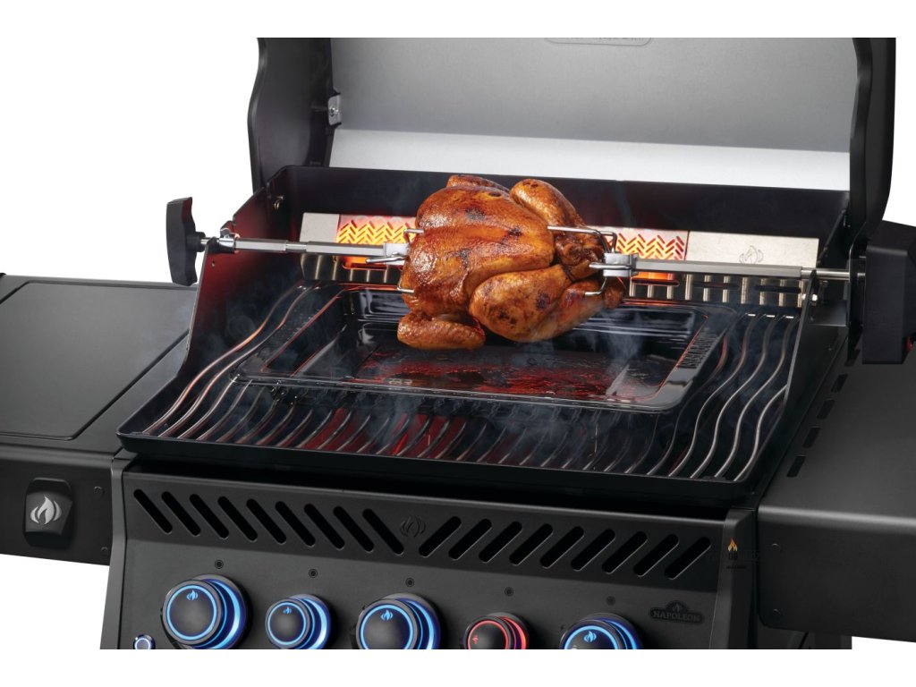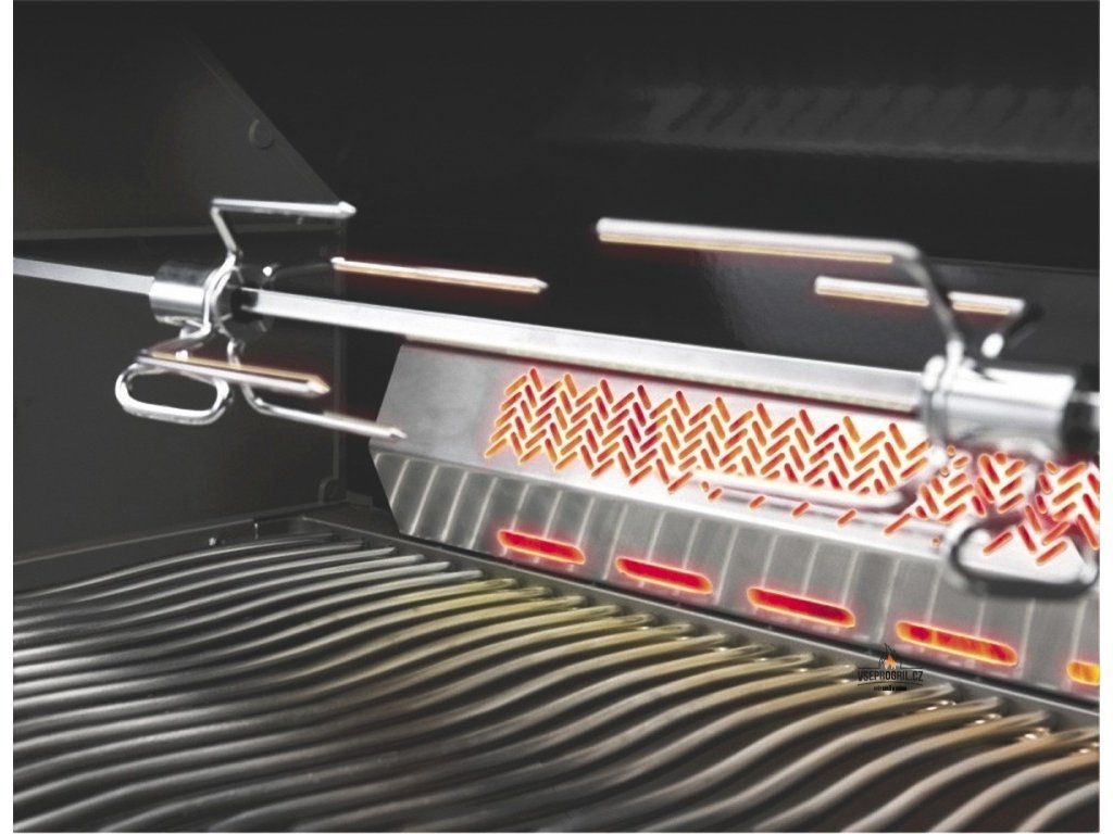 Je vybavený zadním hořákem pro rotisserii (rotiserie jako dárek zdarma), bočním infračerveným hořákem (na prudké zatažení masa nebo přípravu omáčky na pánvi), téměř bezúdržbovým nerezovým roštem ve tvaru vln, kterým nepropadne ani ten nejmenší kousek zeleniny a inovovaným odkladacím roštem se spoustou místa třeba pro zavěšení kuřecích paliček.