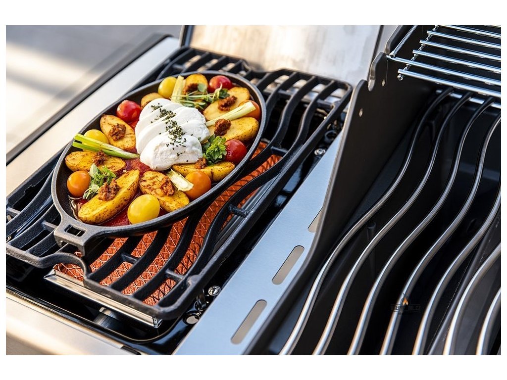 Dramaticky rozšířuje plochu grilu, se kterou můžete pracovat. Díky propracovanému systému průřezů skrz něj nepropadne už ani kousek cibule, na krajích do nich pak můžete zavěsit třeba kuřecí paličky.