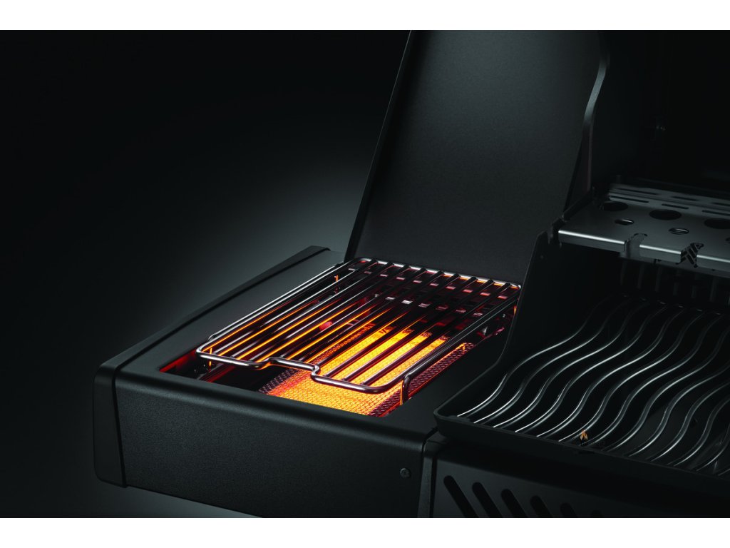 Infračervený boční hořák dokáže vyvinout teplotu až 800 °C. Díky tomu na něm perfektně zatáhnete steak a všechna šťáva zůstane uvnitř anebo ho můžete využít jako klasickou boční plotýnku třeba na přípravu omáčky.