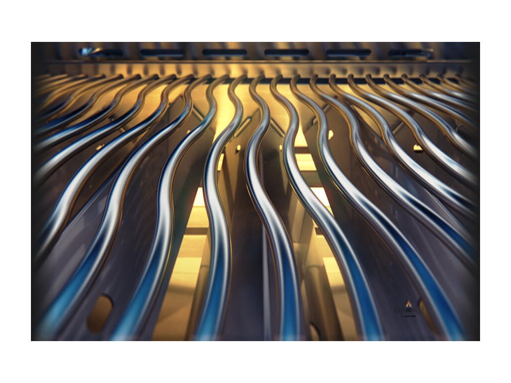 Samotný rošt grilu je z nerezové oceli se specifickým tvarem vln, takže efektivně akumuluje teplo a zároveň téměř znemožňuje propadnutí drobnějších kousků jídla.