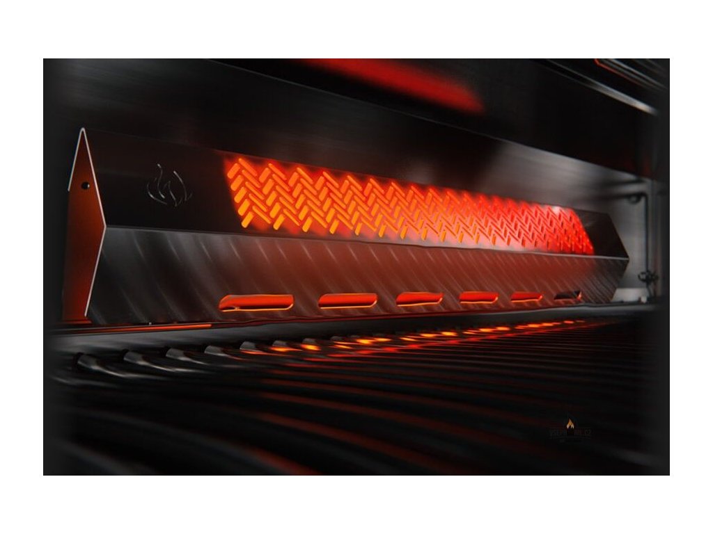 Pyšní se grilovací plochou 73 x 45 cm, třemi klasickými hořáky z nerez oceli, zadním hořákem pro rotisserii (rotiserie jako dárek zdarma) a bočním infračerveným hořákem SizzleZone v levé polici, který je naší specialitou - dokáže vyvinout teplotu až 800 °C.