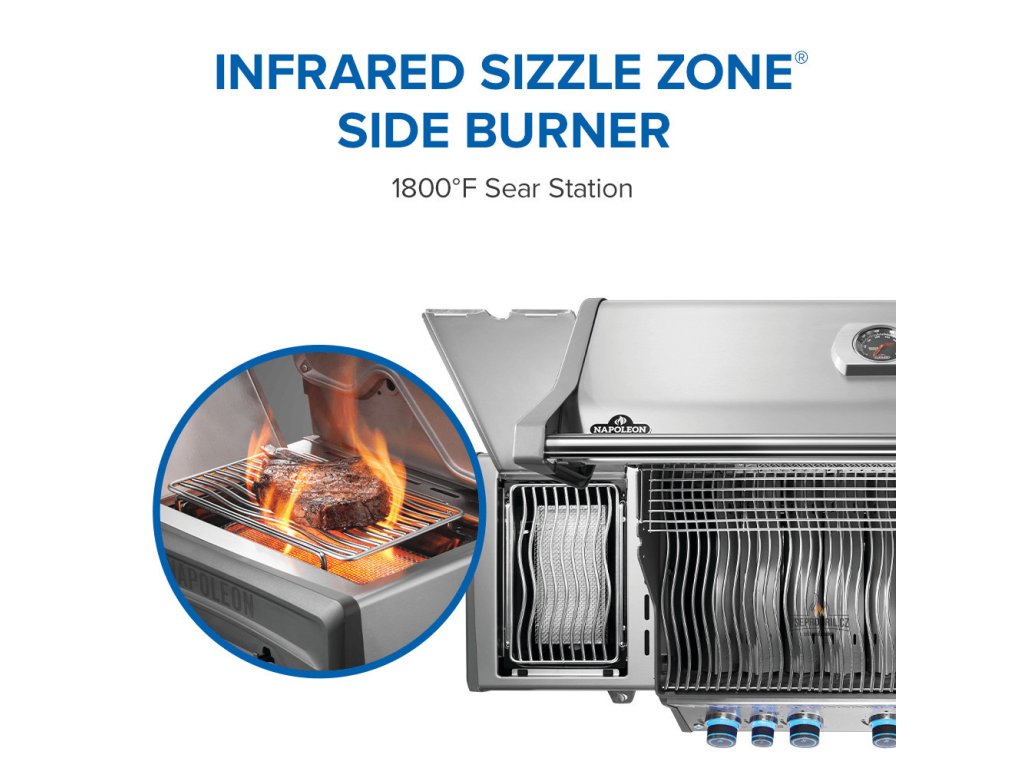 Infračervený boční hořák dokáže vyvinout teplotu až 800 °C. Díky tomu na něm perfektně zatáhnete steak a všechna šťáva zůstane uvnitř anebo ho můžete využít jako klasickou boční plotýnku třeba na přípravu omáčky.