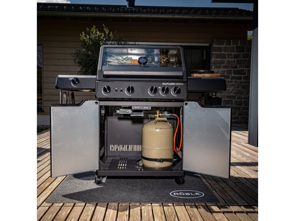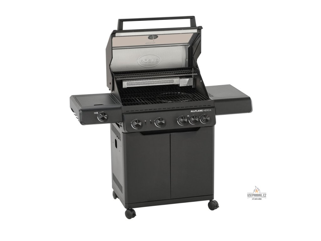 Značka Rösle přichází pro rok 2025 s novou modelovou řadou grilů AllFlame. Tento čtyřhořákový gril je doplněn zadním hořákem pro rožnění (rožeň není součástí balení, je nutné si jej dokoupit) a infra hořákem pro dokonalé steaky v jednom z bočních stolků. Jednoplášťové víko je doplněno o prosklenou část s teploměrem.