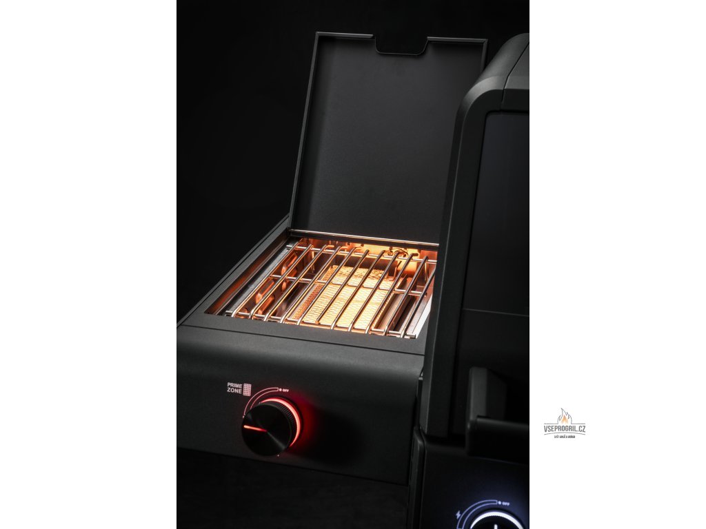 Boční PRIMEZONE s nerezovým roštem a s teplotou až 800 °C je perfektní pro okamžité zatažení steaků před samotným grilováním, ale slouží zároveň i jako postranní vařič .