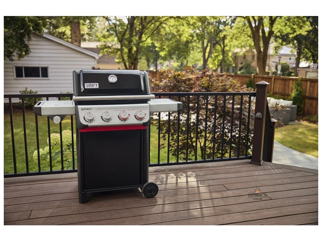 Gril Weber Spirit E-435, Prémiový gril řady Spirit se čtyřmi nerezovými hořáky, vařičem v bočním stolku, litinovým grilovacím roštem velikosti 61 x 45cm a analogovým teploměrem představuje spojení pokročilé technologie, maximální výbavy, moderního designu a kvalitního zpracování jako u všech grilů Weber.