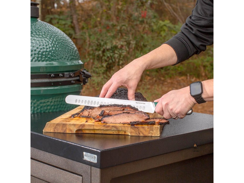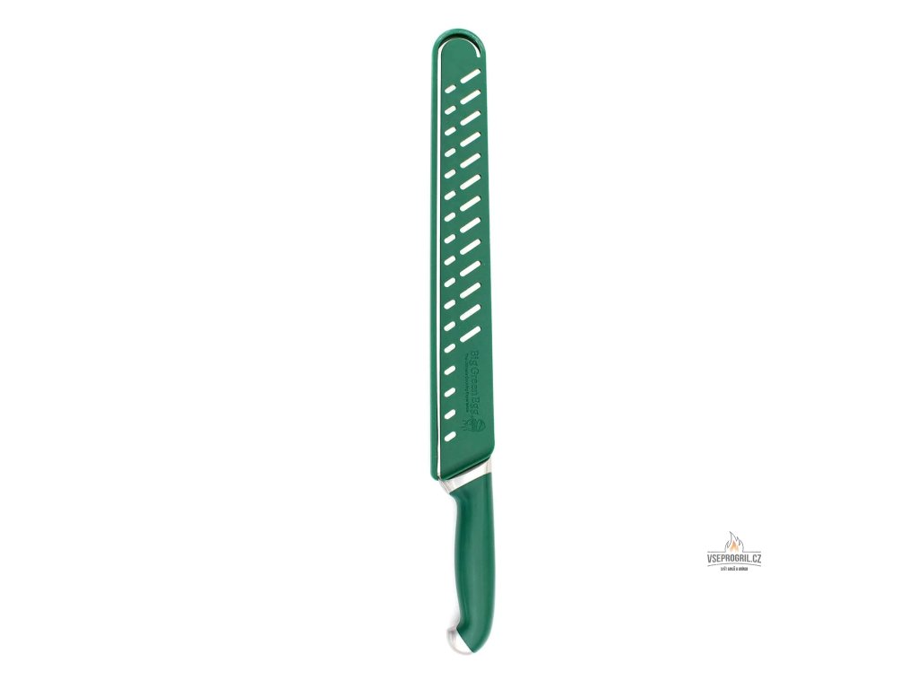 Tento prémiový nůž z nerezové oceli o délce 30 cm je určen pro krájení hrudí, pečení, šunky a dalších velkých kusů masa. Snadno vytváří tenké, rovnoměrné plátky jedním tahem čepele a je také ideální pro krájení koláčů a sendvičů.