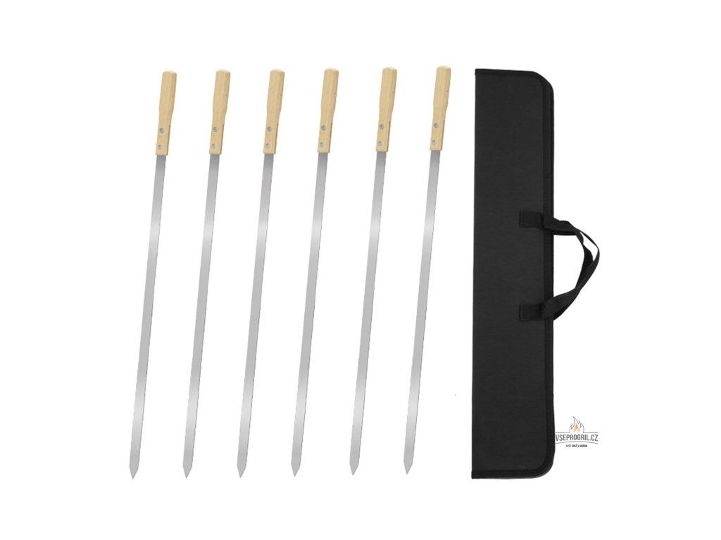 Obsah balení: 6x ploché špízy na grilování, 1x úložné pouzdro