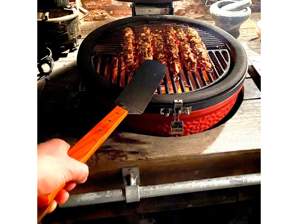 Extra dlouhá špachtle Valhal Outdoor je vyrobena ze dřeva a nerezové oceli.